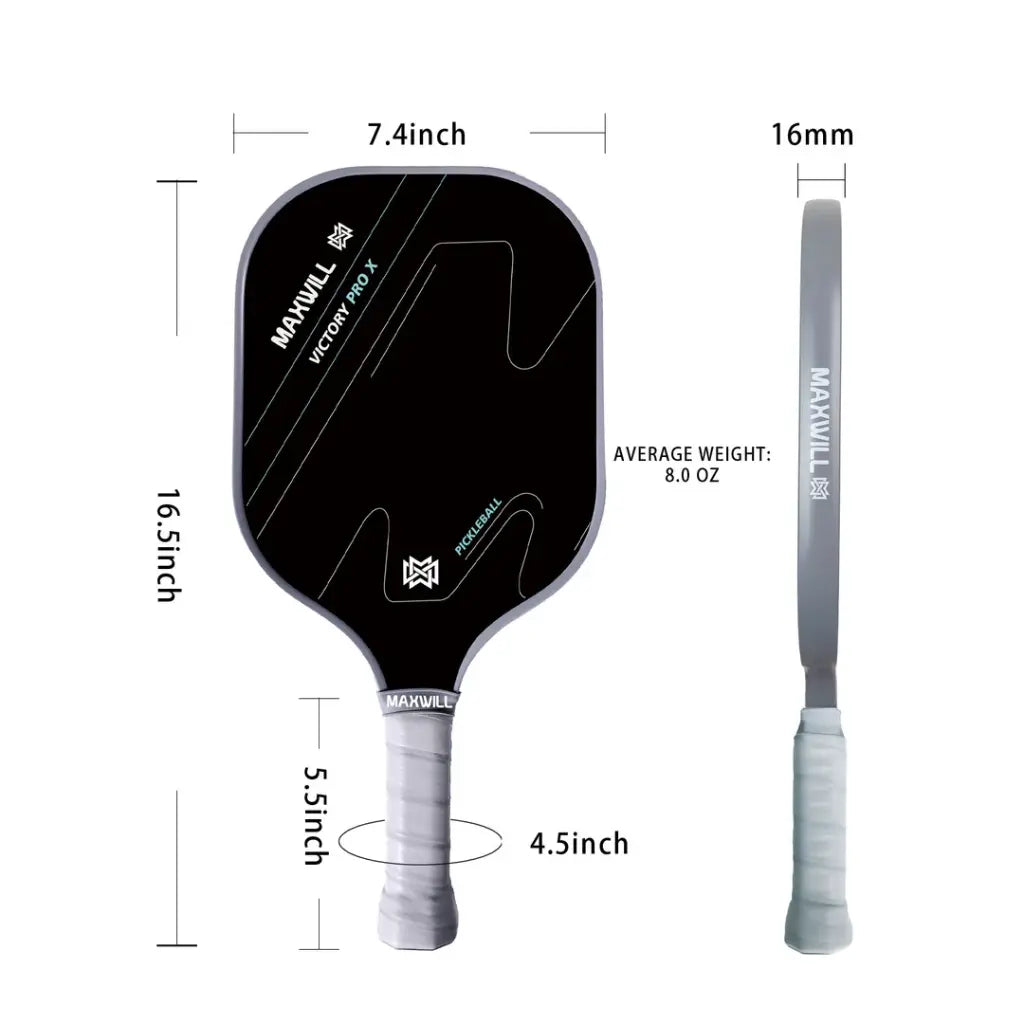 La Maxwill Victory Pro X Carbon es una pala de pickleball profesional, diseñada para jugadores que buscan potencia y velocidad sin sacrificar control. Su cara de carbono avanzado y núcleo de polipropileno honeycomb permiten golpes explosivos con un sweet spot optimizado, mientras que su construcción ligera y equilibrada proporciona agilidad y precisión en la red y en el fondo de pista. Ideal para competiciones y entrenamientos exigentes.
